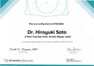 このライセンスは、指導医により所定の講習会及び実技試験を合格した眼科専門医のみ与えられるもので、ライセンス取得者にのみメーカーから有水晶体眼内レンズが供給されるという制度です。公的な資格ではありません。